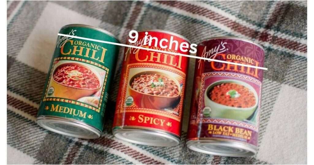 Three regular soup cans lined up end-to-end make a solid visual for estimating 9 inches. Each can is around 3 inches wide, so placing them side by side gets you close to that length.
